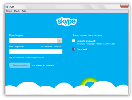 Lancez Skype. La fenêtre suivante apparaîtra :